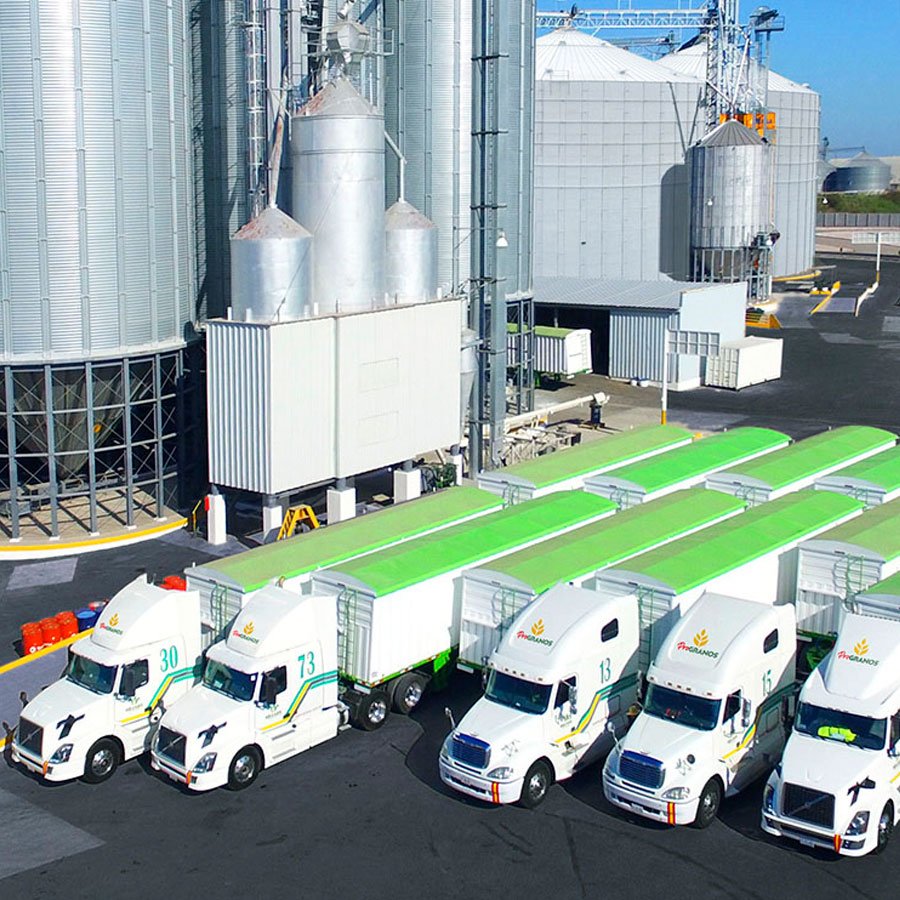 Tenemos 12 centros de acopio estratégicamente ubicados a lo largo del estado de Sinaloa con capacidad para 500,000 toneladas. Apoyamos a más de 2,500 productores de grano con fertilizantes, grano, agroquímicos, créditos de habilitación o avío y Agricultura por Contrato.
